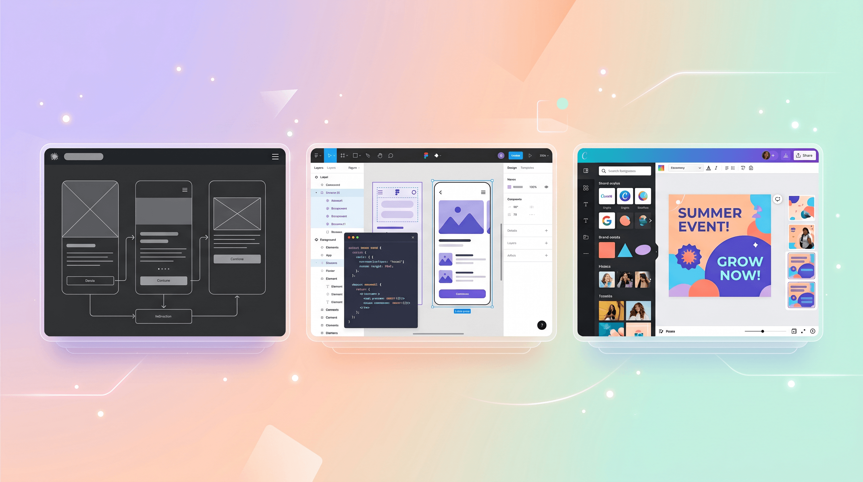 | UI generation | Strong (prototypes, mockups) | Strongest (native to Figma frames) | Good (Canva Code 2.0 for web) |