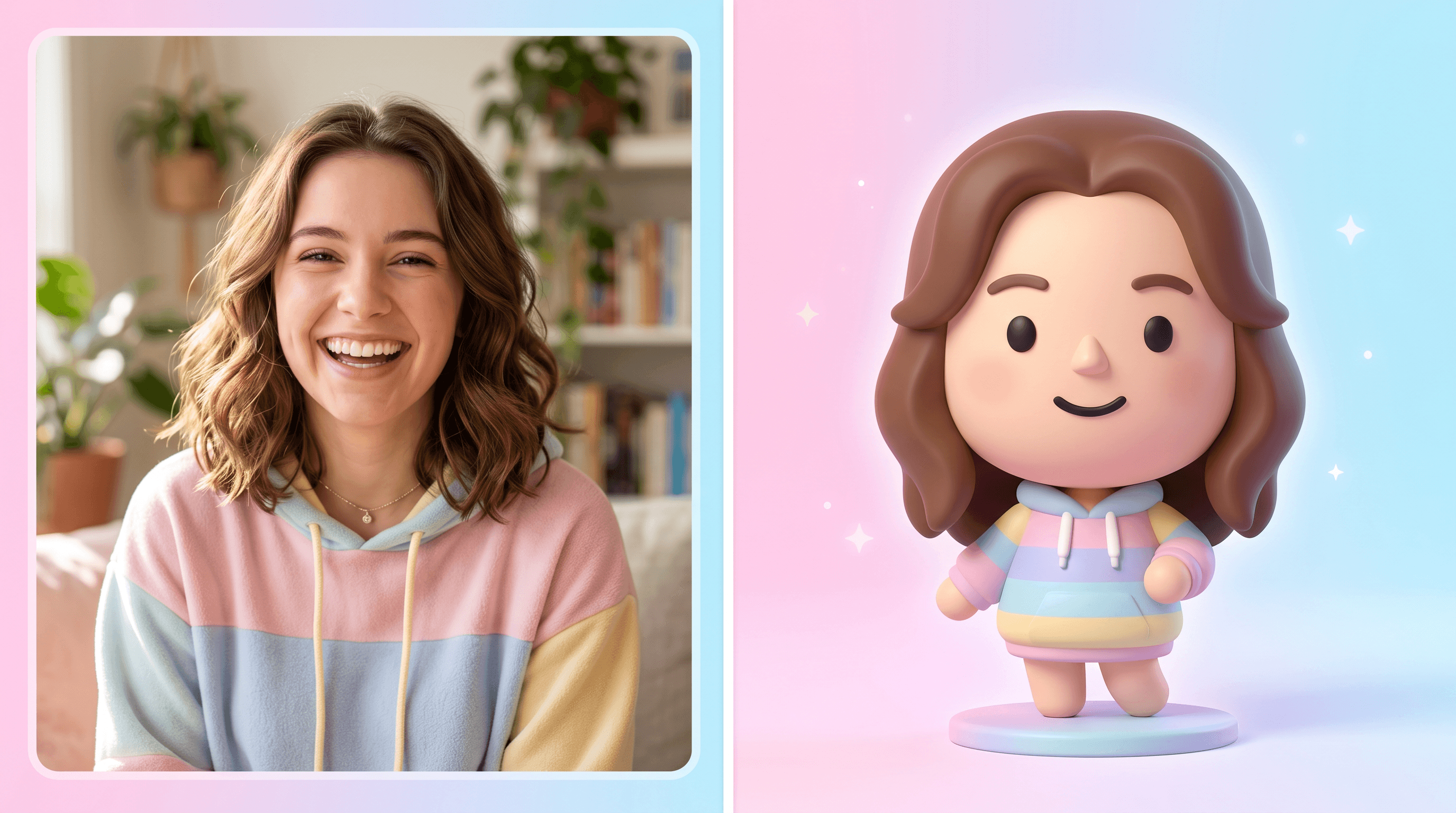 Start with a front-facing photo where your face, hair, and shoulders are clearly visible. Natural lighting, a neutral expression, and a plain background produce the most accurate 3D chibi avatar from photo. Avoid sunglasses, heavy filters, or extreme angles — the AI has to guess what's underneath them, and the guess rarely matches.