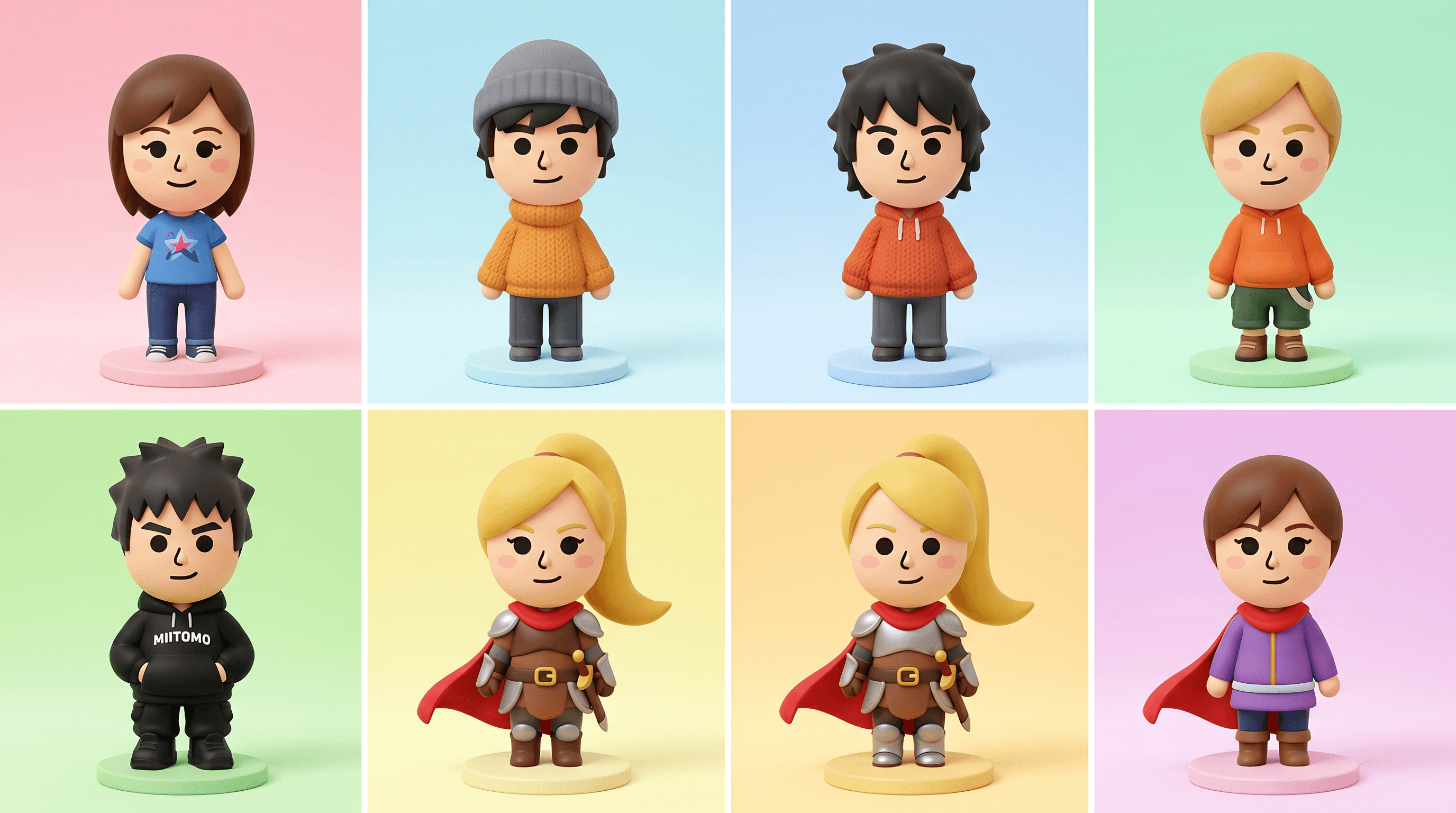 When an AI Mii creator gets any of these wrong — too much facial detail, too realistic lighting, too adult body proportions — the result stops reading as "Mii." The prompts below lock in all five at once.