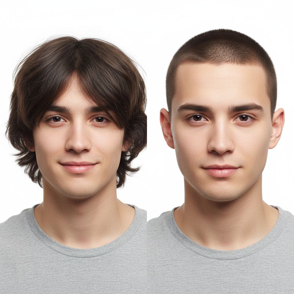 Curious about getting a buzz cut? Our AI buzz cut filter lets you preview the buzz cut hairstyle before committing. Upload your photo and let the buzz cut filter show you how a buzz cut would transform your look. From classic military buzz cuts to modern textured buzz cuts, our buzz cut filter delivers realistic results.